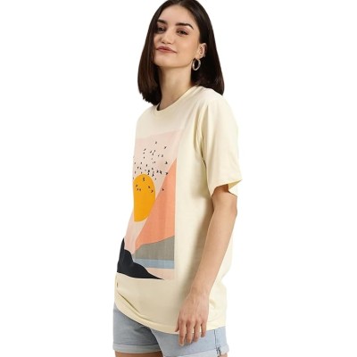 女式 100% 纯棉图案印花超大版型圆领 T 恤