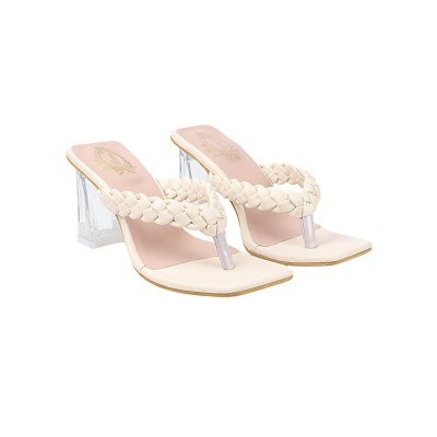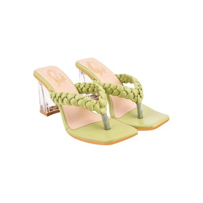 双切高跟凉鞋方头凉鞋套穿时尚婚礼厚实块状穆勒高跟鞋女式