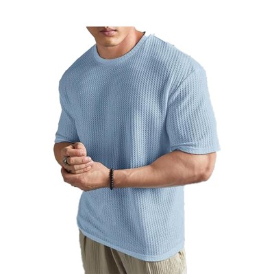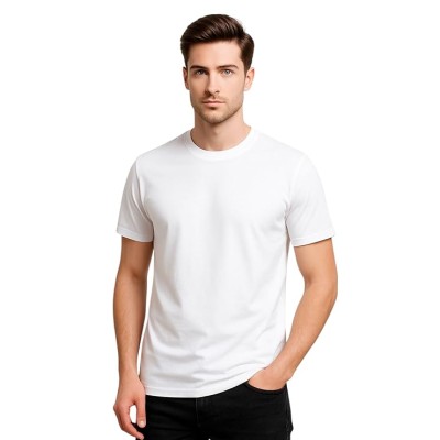 男士素色修身聚酯纤维半袖圆领 T 恤