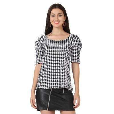 女式棉质常规版型通体印花圆领泡泡袖上衣