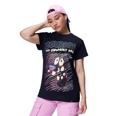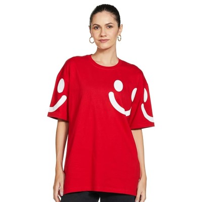 女式刺绣棉混纺民族和西式上衣纯棉常规版型圆领酷Cyber Bunny正面图案印花露脐上衣 女士和女孩