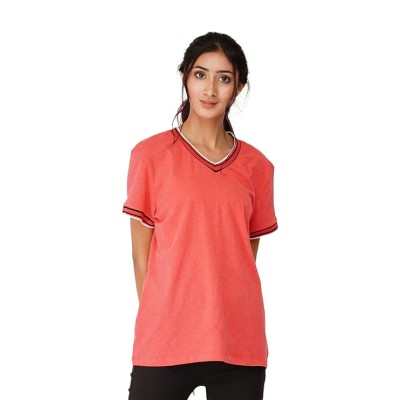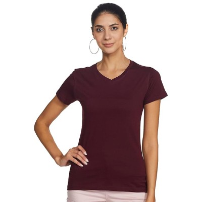 女式 V 领半袖纯色休闲常规版型棉质 T 恤