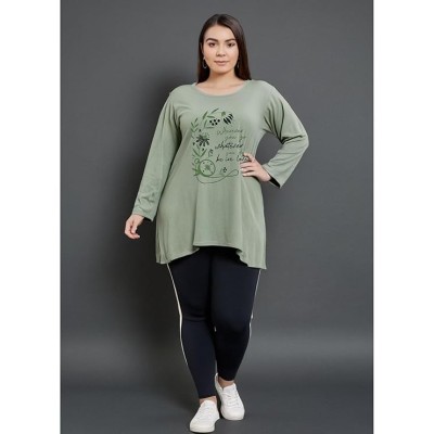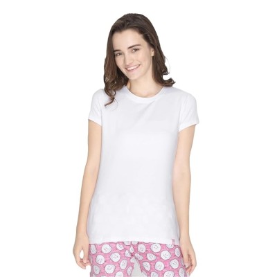 棉质短袖圆领修身版型纯色印花常规和大码外套 T 恤和 T 恤,适合女士和青少年