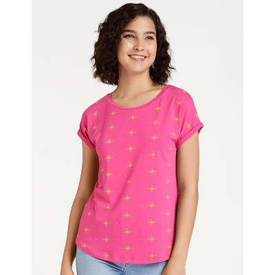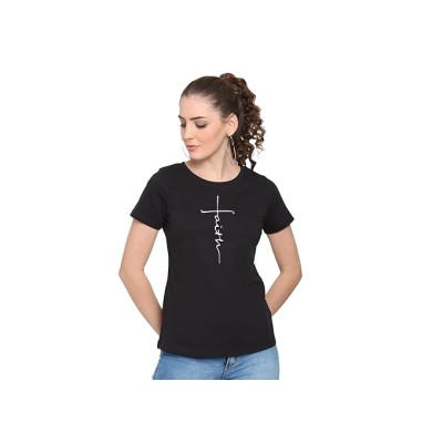 女式 100% 纯棉常规版型 T 恤 |圆领半袖印花T恤 |常规版型印花 T 恤 女士/女孩