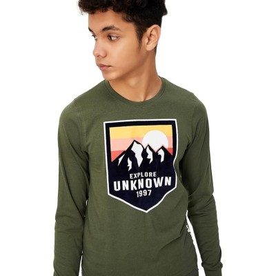男童棉质图案印花常规版型 T 恤