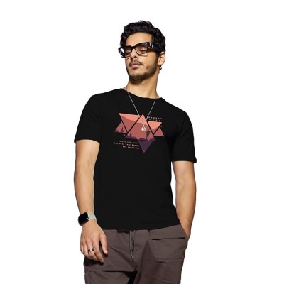 男士印花 100% 纯棉 T 恤 - 常规版型,圆领,半袖