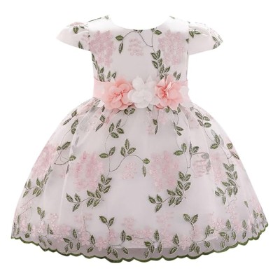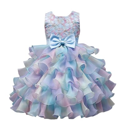 女孩版型喇叭形及膝浅蝴蝶结贴花无袖派对及膝连衣裙涤纶粘胶纤维
