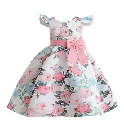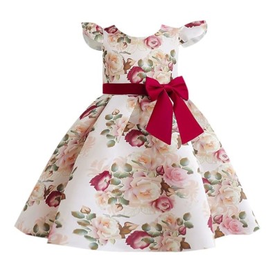 女孩版型喇叭形全长全袖通体印花派对礼服